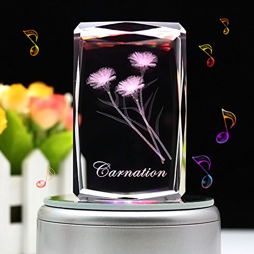 Automatically rotating music box base with LED colorful lights: Gradient red, yellow, blue and green lights shine in the precious crystal when the music is flowing in the air.
