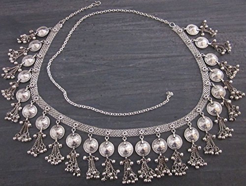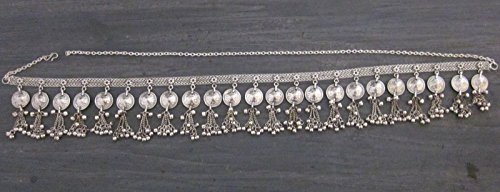 Studio : India Stop Publisher : India Stop Binding : Jewelry Product Description The process in making this item is like making traditional jewelry in india . The main belt base is layred soldered chain with itched design small copper cuttings. Brass sheet is cut and hand press machine used to itch it. The brass medallions are cut by hand like cutting paper with scissors. These are then soldered with hooks. Metal fringe chain are used to decorate and embellish. Silver plating with oxidized finish lends a classy vintage look to the piece. 0