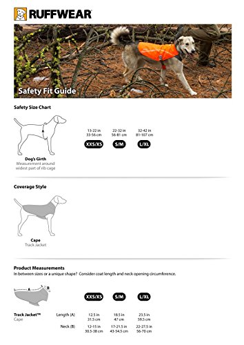 -. Binding : Misc. -. Brand : RUFFWEAR -. Color : Blaze Orange -. Feature : PLEASE See images for sizing chart / High-visibility blaze orange fabric with integrated reflective print design for maximum visibility / Three separate light loops for attaching multiple Beacon safety lights / Streamlined design is easy to put on and stays in place / Lightweight low profile tension hooks provide a quick and secure connection -. Label : RUFFWEAR -. Manufacturer : RUFFWEAR -. PackageQuantity : 1 -. ProductGroup : Pet Products -. ProductTypeName : PET_SUPPLIES -. Publisher : RUFFWEAR -. Size : Small/Medium -. Studio : RUFFWEAR -. Title : RUFFWEAR TRACK JACKET BLAZE ORANGE HIGH VISIBILITY REFLECTIVE SAFETY DOG COAT ALL SIZES (Small/Medium, Blaze Orange)