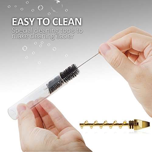 Twisty New Blunt Environmentally friendly. Material: Metal Size: 132*69*30mm Weight: 145g Color: gold The product kit Including: 1 twist blunt 2 Class Tube 2 Cleaning Brush 2 O Ring 1 Silicone Cap 0