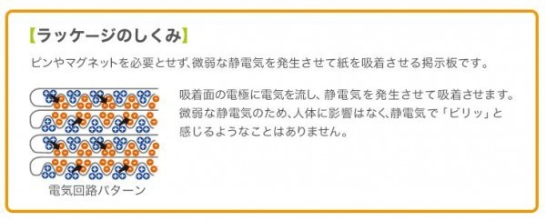 | ノリやピンは不要!静電気でラクラク掲示!微弱な静電気だから触っても「ビリッ」ときません。 |