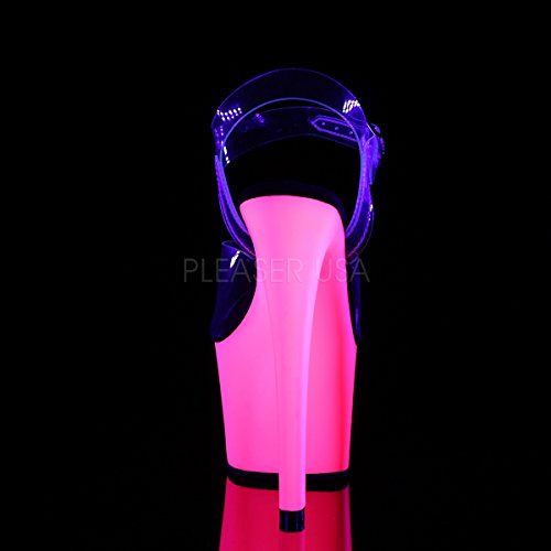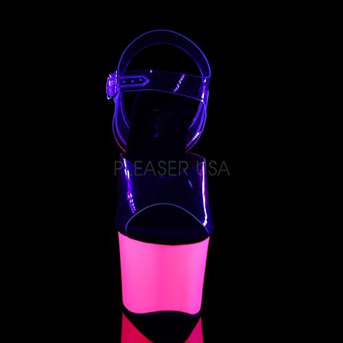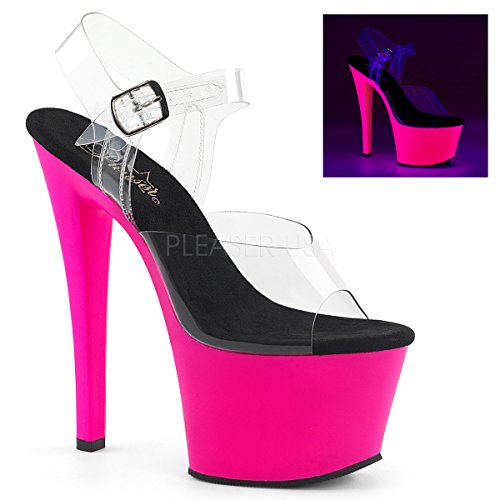 Product DescriptionSKY-308UV/C/NHP features 7" (178mm) Heel, 2 3/4" (70mm) Platform Ankle Strap Sandal Featuring Blacklight Reactive Platform Bottom0