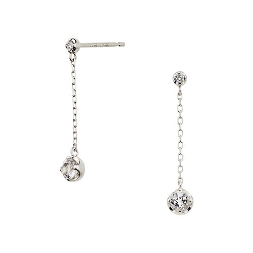 -. Feature : K10WG・ホワイトトパーズ・ダイヤモンド / 縦約20.5mm 横約3.8mm / うるうるとしたホワイトトパーズが瑞々しく輝くピアス。ホワイトトパーズはコロンとしたホワイトゴールドの石枠に留められたデザイン。動くたびに揺れ、女性らしさを印象付けます。普段のコーディネートに取り入れるだけで華やかな横顔を演出してくれます。 / トパーズ