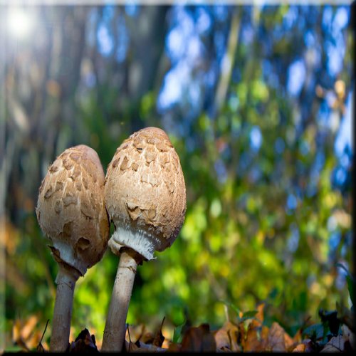 Rikki Knight RK-8intilec-8972 8" X 8" Pair of Parasol Mushrooms with Blue Green Background Design Ceramic Art Tile