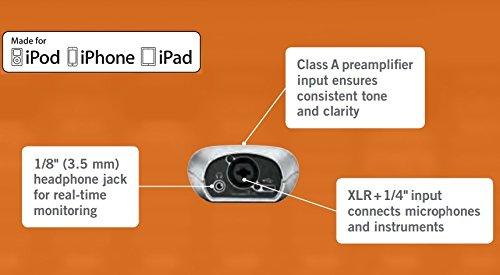 -. Feature : Apple MFi (Made for iPhone/iPod/iPad) Certified for direct connection to any iOS device without the need for any additional adapters or connection kits / Discrete JFET Class A buffered instrument preamplifier input for exceptional tone and clarity / Supplies 12-48v phantom power (12v-iOS/48v-USB) / 5 DSP Preset Modes (Speech, Singing, Flat, Acoustic Instrument, Loud) / Automatically adjusts EQ, Compression and Limiting for optimal results / Front panel touch controls for mode selection, headphone volume, microphone gain, and mute / Built-in headphone output for real-time monitoring / Combo XLR or 1/4" jack connects XLR microphone or 1/4" plug guitar/bass/keyboard / Includes one (1) MicroB-to-USB cable and one (1) MicroB-to-Lightning cable / All-metal construction designed, built and rigorously tested by Shure