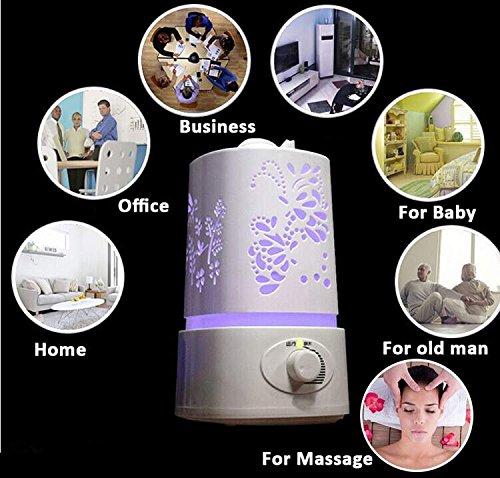 - Our aroma diffuser works great not only for aroma therapy but also providing plenty of moisture for your dry cough or dry skin and great for all your wood furniture in the winter too Perfect for Beauty salon, Spa, bedroom, living room, conference room, office. reception center, corridor, pet room, rest room, baby room, hotel, hospital or any other private/public places.