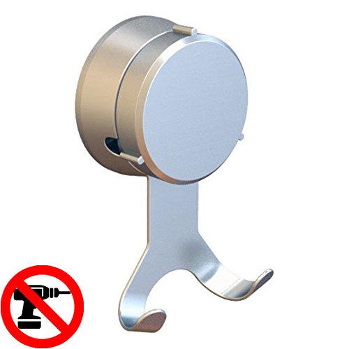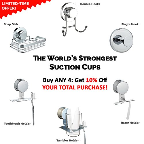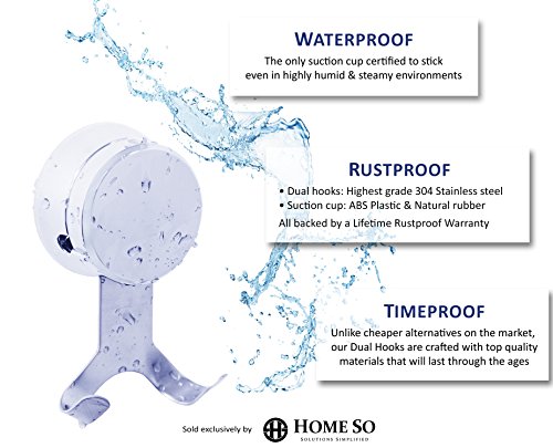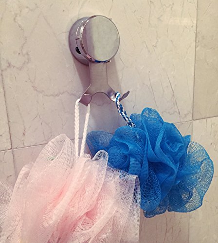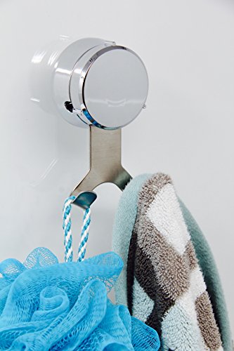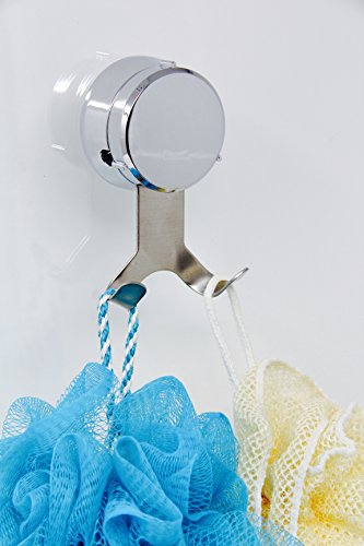 HOME SO Bath Towel Hooks with Suction Cup Holder - Removable Shower Hanger Storage Organizer for Towels, Loofah, Bath robes - Chrome Stainless Steel