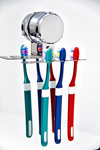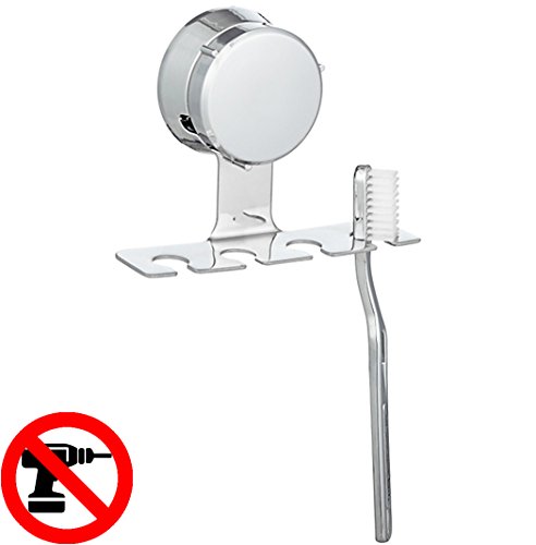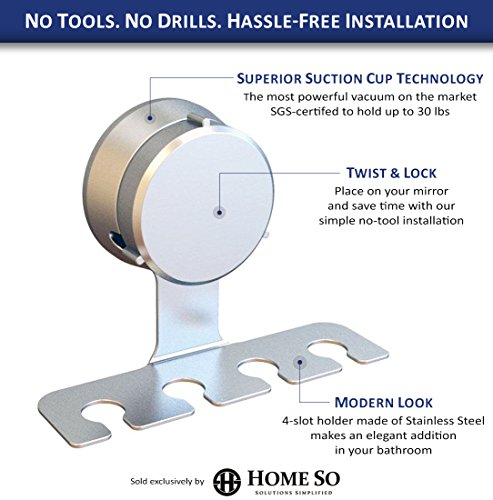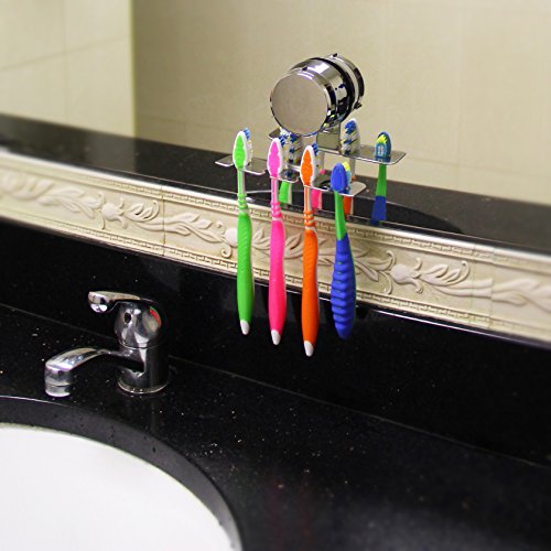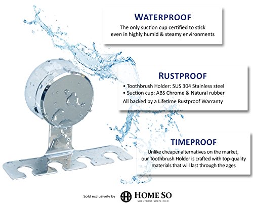 HOME SO Toothbrush Holder with Suction Cup Hanger - Antibacterial Bathroom Shower Tooth Brush Hook Organizer, Stick on Mirror - Rustproof, Stainless Steel