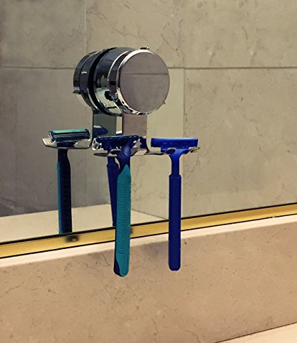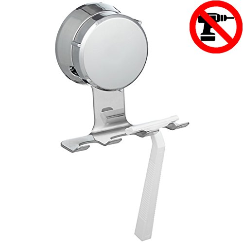HOME SO Razor Holder with Suction Cup Hanger - Antibacterial Bathroom Shower Shaver Hook Organizer, Stick on Mirror Glass - Rustproof, Stainless Steel
