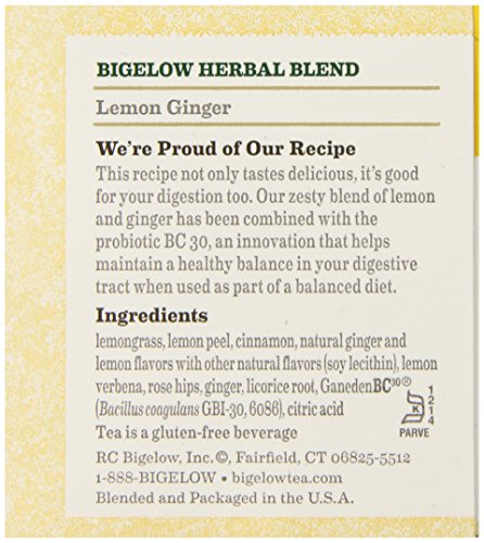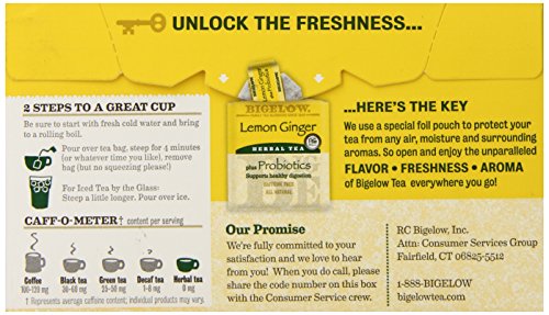 -. Title : Bigelow Lemon Ginger Herb Plus Probiotics Tea - Caffeine Free - 18 Individually Wrapped Tea Bags