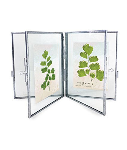 Isaac Jacobs Brass and Glass DOUBLE Floating Frame with Sliding Locket Closures (4x6, Antique Silver)