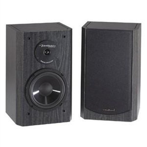 -. Feature : 6.5" poly graphite woofer / 0.75" soft dome tweeter / Video-shielded, 2-way, Venturi-tuned vent bookshelf speakers / Black laminate finish / 2-way, tuned-vent bookshelf speakers with wide, 43 to 20,000 Hz frequency response for deep bass and extended treble / 90 dB sensitivity; recommended for use with amplifiers pushing 10 to 150 watts per channel / 6-inch poly/graphite woofer, .75-inch poly dome tweeter per speaker / Video-shielded for distortion-free placement near televisions or computer monitors / Measures inches 8.9 x 14.8 x 9.1 (W x H x D) each