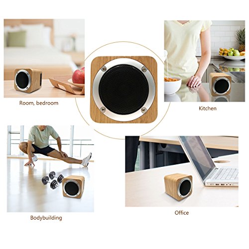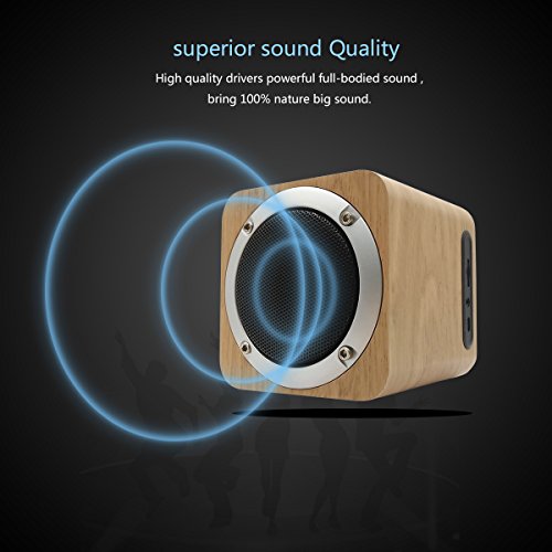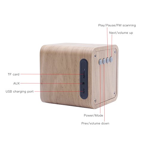 -. Feature : Bluetooth V4.0 speaker ,Receive audio signal within 10M Wooden box , reproduces the better sounds , Unique bass boost technique / Small sized speaker with a Super-sized 3-inch full frequence unit , Support TF card playing MP3 , Support FM Radio. / Equipped with AUX port , Micro USB port for charging , Built-in hyper capacity lithium battery of 1800 mAh , which can support 5 hours play music in your TF card , Volume adjust and Next /prev are the same as normal mode. / Superior Sound Quality: The speaker is small and extremely loud with crisp sound and strong deep bass, Just feel free to be happy if the sound surP.R.Ise you / Convenient: Whether it's a pool party, a house party, a getaway, or a family gathering, you can bring it along wherever you go , This Wood Bluetooth Speaker will be your best friend!