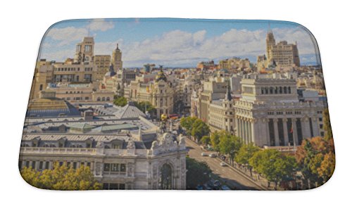 Gear New Madrid Cityscape & Aerial View of Gran Via Bath Rug Mat No Slip Microfiber Memory Foam