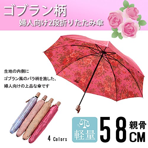 -. Title : <婦人折傘 ゴブラン柄> 両面 2段折 赤