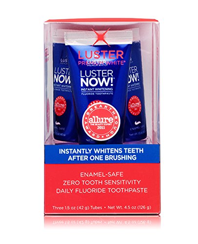 -. Binding : Health and Beauty -. Brand : LUSTER PREMIUM WHITE -. EAN : 0814457010235 -. Feature : Contains Bluverite, a proP.R.Ietary formula that creates the optical effect of whiter teeth / Whitens teeth after just one brushing-- results last for hours / Removes surface and deep stains with daily use / Safe on enamel and dental restorations / Guarantee and Warranty are only available if purchased at an authorized reseller -. IsAdultProduct : 0 -. Label : Luster Premium White Official Store (Dentovations Inc.) -. Manufacturer : Luster Premium White Official Store (Dentovations Inc.) -. Model : DEN-814457010235 -. MPN : DEN-730100 -. NumberOfItems : 1 -. PackageQuantity : 3 -. PartNumber : DEN-730100 -. ProductGroup : Beauty -. ProductTypeName : HEALTH_PERSONAL_CARE -. Publisher : Luster Premium White Official Store (Dentovations Inc.) -. Studio : Luster Premium White Official Store (Dentovations Inc.) -. Title : Luster NOW! Instant Whitening Toothpaste, 3 Pack, Net Wt. 4.5 OZ -. UPC : 814457010235