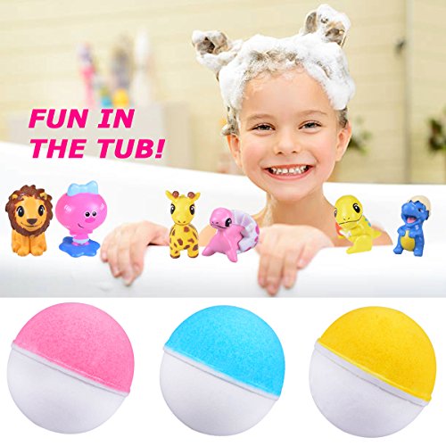 What is the best thing that can happen to a child? Receiving a toy of course! This is why we have enclosed a surprise toy within every fizzing bubble ball! From now on, your kids will be anxiously waiting for their next bath! (The toys are small, so I don't recommend these for children under 3 as they are a choking hazard except under adult supervision.)
