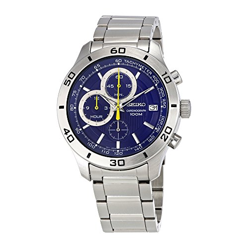 SEIKO SSB185P1,Men's Chronograph,Stainless Steel Case & Bracelet,Blue Dial,100m WR,SSB185