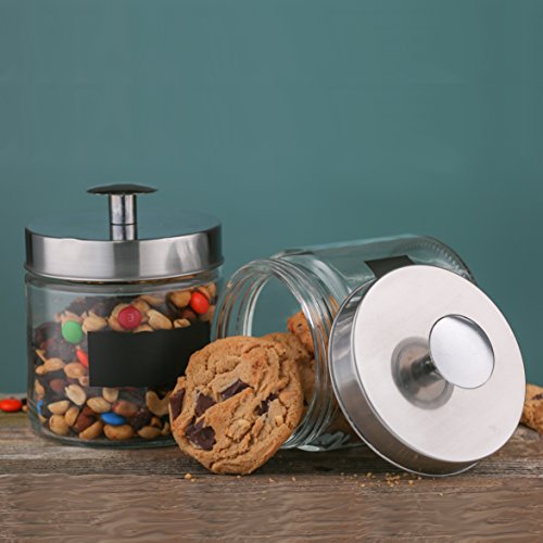 - KEEP FOOD FRESHER IN STYLE: Who said that food storage containers need to look ugly? With these simple, but classy crystal-clear glass canisters, you can organize your counter and racks, without ruining the décor of your kitchen! And the best part? You can personalize and add a creative touch to your new jars, using the chalkboard labels that you get for free! How cool is that?