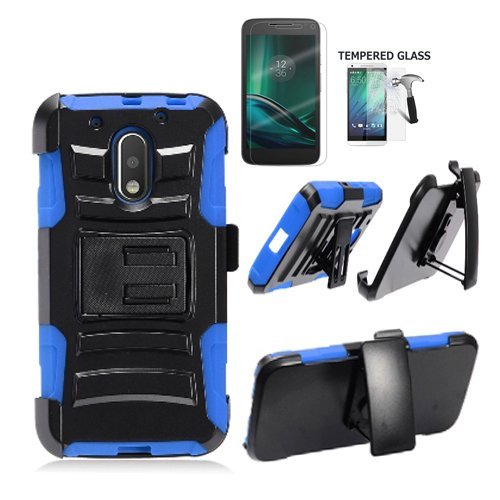 *For Motorola Moto-G-Play-Droid / Moto-G4-Play (Consumer) / Moto-G-Play Rugged Case dual-layered with Kick stand. *Protection- double protection, inner soft silicon cushion provide extra security and outer hard PC plastic to against impact, bump and falls. *Material - PC Mix ABS Hard plastic/ Silicone Edge. *Belt Clip Holster with kick Stand Tempered Glass Screen. *Because the 2.5D curved design of the Screen, The Temper glass are slightly smaller than the Phone actual screen size. manufacturer made it smaller to cover the flat portion of the screen and leave the curve edge. Please align well the screen protector to cover the flat portion of the screen. Features: 1. The item is made to protect the LCD from damage and scratches with specially processed glass that has been reinforced to increase shock absorbency.The entire surface of the protector is transparent and the back side is covered with a strong silicon adhesive for easy installation. When installed, there are no gaps between the LCD and the protector which means the touch screen's sensitivity is unaffected. 2. Whole Transparency: The protector is 0.26mm thick and made with chemically treated, transparent tempered glass. 3. Surface hardness : 8~9H: The surface of the protector has a hardness of 8-9H, three times stronger than regular PET film. Even shard objects such as knives and keys will not scratch the protector. 4. Oleophobic Coating: The protector has an oleophobic coating that prevents fingerprints and other contaminants and makes the film easy to clean. 5. Delicate Touch: The protector is coated on the back with a strong silicon adhesive that makes installation easy and attaches the film firmly so as to not affect the touch screen's sensitivity. 6. Anti-Shatter Film: If broken, the protector breaks into small pieces that are not sharp, making it safer than other glass products. 7. 2.5D Curved Edge Finished 99%Feature