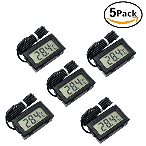 -. Title : 水槽 冷蔵庫温度計 LCD デジタル温度計 温度モニター 内蔵水温センサー 5pcs (ブラック)