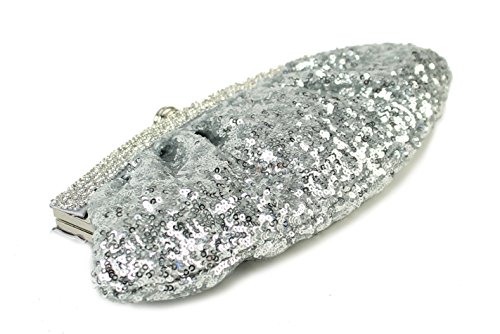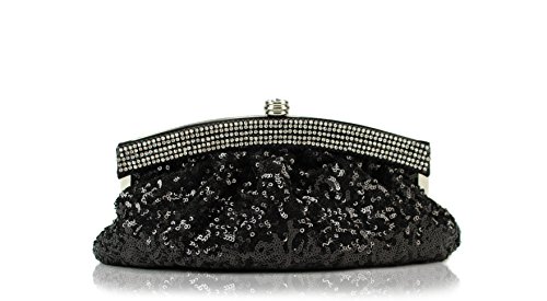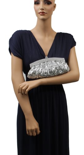 Sequined high quality synthetic satin covered bag. Satin and crystal covered frame.