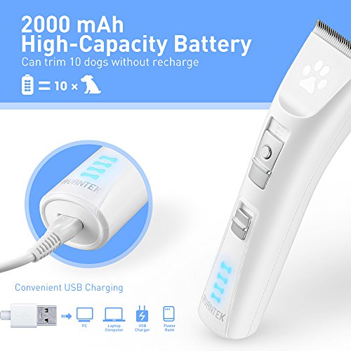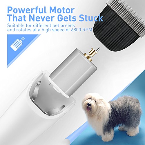 Never Get Stuck with Non-Stop Power The built-in motor operates at up to 6,800 RPM so it will work smoothly no matter what breed of pet or what length of hair. The clipper utilizes a constant voltage to keep running at a constant speed and to prevent power surges. It is suitable for even the most sensitive areas thanks to its quiet motor and minimal vibrations. With a built-in battery, you don't have to worry about annoying tangled cables.