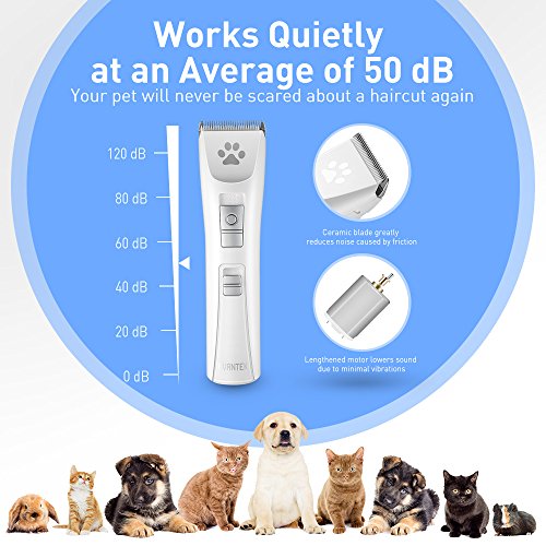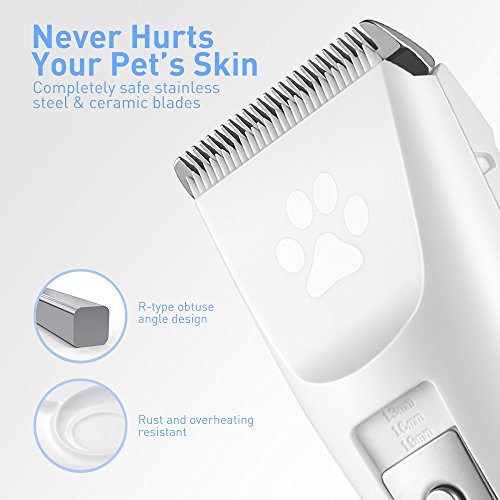 A Quiet Trim and Safe Design Equipped with premium R-type blades, the clipper works gently on your pet's sensitive areas as well as protecting them from pulls and cuts. The blades heat up gradually compared with other models on the market. The motor is so quiet that your pet will not be scared.