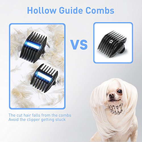 User-Friendly Guide Combs 3/6 mm and 9/12 mm guide combs come in pairs of two for easy packing. Simply slide the mode button and then lock the length. This clipper is perfect for when you want to give your pet a stylish new look or just want to cut the hair short during the hot weather.