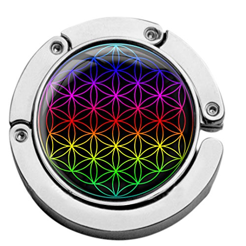 Product DescriptionBaghanger from a round shape is made of chromed metal with a fine, high gloss resin coating.Motiv:Flower of the lifeSize / Weight