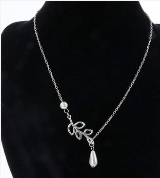 kalung perak Elegant Lady Charm Silver Plated Chain Necklace Pearl Branch Leaf Pendant JEW SJA0846535262 HSL qty 0