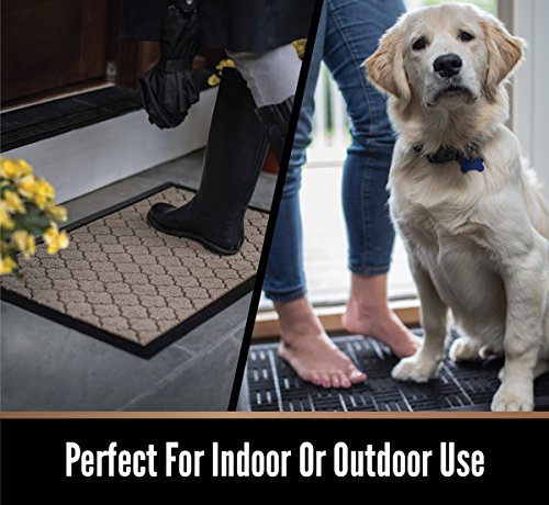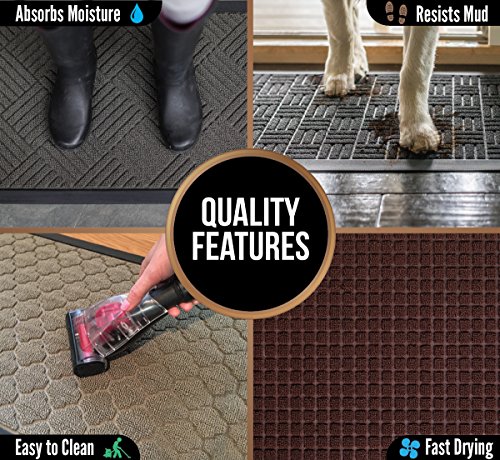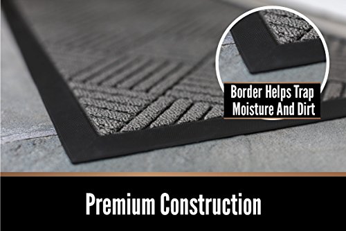 ABSORBS MOISTURE AND DIRT: Our mat is designed with a strong, rubber beveled border that helps to form a retention dam to trap moisture, mud or other messy unwanted debris from tracking into your home. Plus, the slightly raised polypropylene fabric helps to trap dirt within its patterned grooves and dries quickly to help prevent everyday wear and tear.