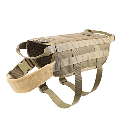 -. Brand : Vince -. Feature : Lightweight for long time wearing comfortably / Made of high quality Nylon, durable, clean and sturdy stitching / Thorax and abdomen straps can be adjusted for wearing stability and comfort / Two carry handles are attached front and rear; with two attachment points for a leash / The MOLLE system on both sides of vest can let you mount additional pouches(not include) -. IsAutographed : 0 -. IsMemorabilia : 0 -. Label : Vince MoKe -. Manufacturer : Vince MoKe -. MPN : A0003 -. PartNumber : A0003 -. ProductGroup : Sports -. ProductTypeName : OUTDOOR_RECREATION_PRODUCT -. Publisher : Vince MoKe -. Studio : Vince MoKe -. Title : Tactical Dog Molle Vest Hunting Training Harness with Handle Outdoor Pet Supplies# ZSQY-A0003