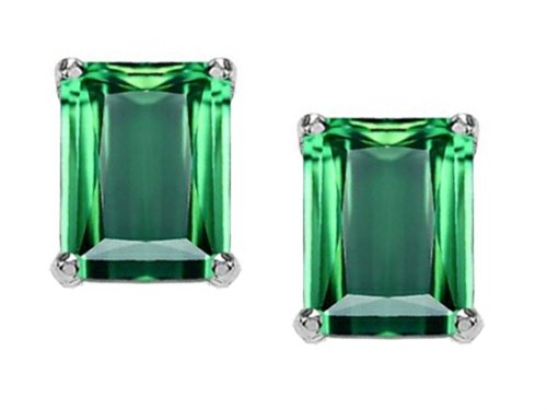 -. Title : Tommaso Design 8x6mm Emerald Cut Simulated Emerald Earrings 14kt