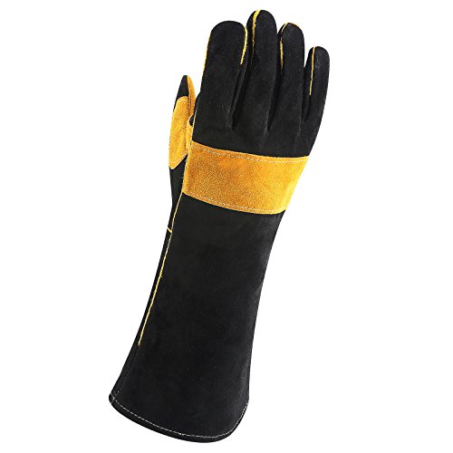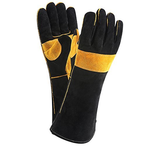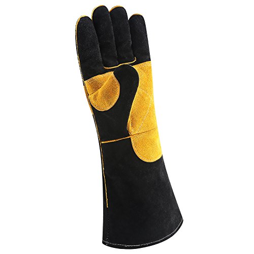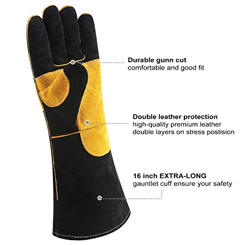 - DURABLE:Made of carefully selected high-quality premium leather.Reinforced double layers on stress postision.Sturdy stitching and 16 inch extra-long gauntlet cuff ensure your safety