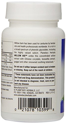 ReleaseDate : 2015-06-22 Studio : Planetary Herbals Publisher : Planetary Herbals Binding : Health and Beauty Product Description Willow bark has been used for centuries by herbalists and health professionals worldwide. It is rich in a broad spectrum of phenolic glycosides, including the highly valued salicin. Planetary herbals willow aid unites this concentrated willow extract with Chinese corydalis, boswellia extract, guggul and other renowned soothing botanicals. 0