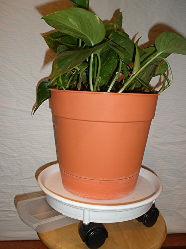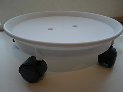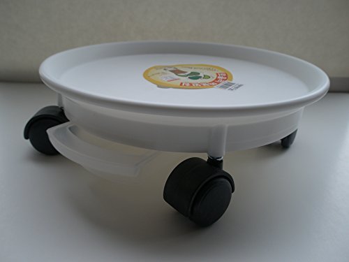 Pla-Tech, Plant Tray with Wheels and Water Reservoir, White, Round, 10-3/4 inches