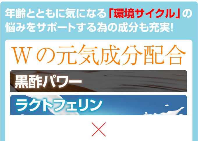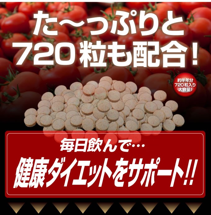 | 原材料名 | とまと乾燥粉末、水溶性食物繊維、還元麦芽糖水飴、 ラクトフェリン、黒酢エキス(緑豊酢) |