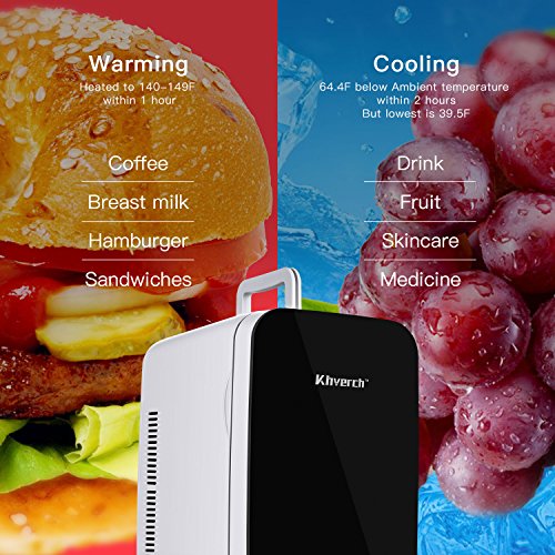 √ Cooler and Heat mini fridge has the switch from heating to cooling, Cooling Capacity: 64.4ºF below ambient temperature / Warming Capacity: 140ºF-149ºF.When cooling, the green indicator on,when heating,the red indicator on