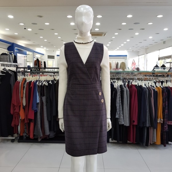 허리 단추포인트 체크 조끼원피스-CA7W1-WOP060-432