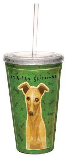 Tree-Free Greetings cc34075 Fawn Italian Greyhound by John W. Golden Artful Traveler Double-Walled Cool Cup with Reusable Straw, 16-Ounce