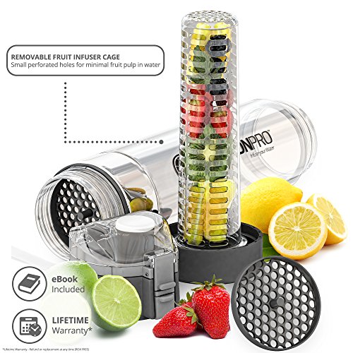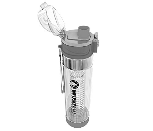 Infusion Pro Water Infuser – 24 oz Fruit Infused Water Bottle | Premium Leak Proof Tritan Plastic with Bottom Infusing Design | Flip Top Locking Spout with Neoprene Insulated Sleeve & Strainer