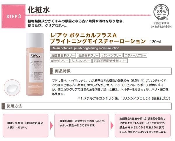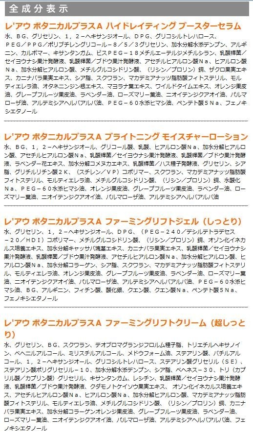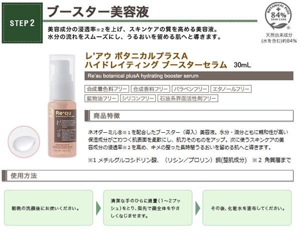 | ●オーストラリアのスキンケア発想から生まれたスキンケアケアシリーズ3点セット☆ | | ●7つの添加物フリー!!(合成着色料、合成香料、パラベン、エタノール、鉱物油、シリコン、石油系界面活性剤) | | ●大人気の【レ’アウ ボタニカルプラスA ハイドレイティング ブースター セラム】がセットになっています。 |