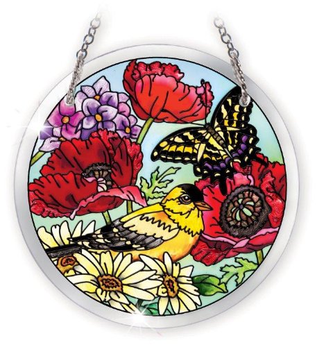 Amia 41566 Parade of Poppies Hand-Painted Beveled Glass 4-1/2-Inch Circle Suncatcher, Medium
