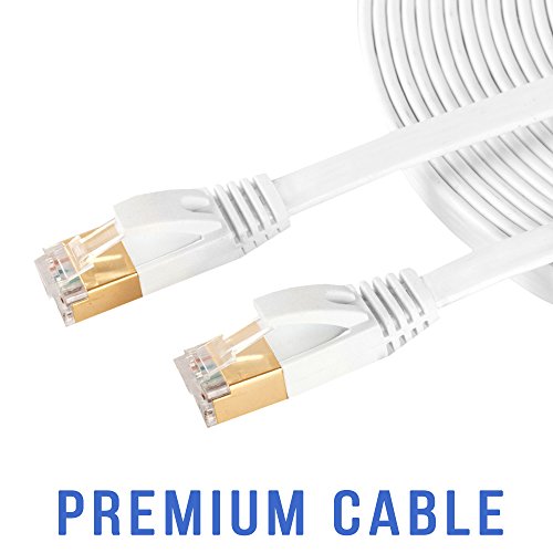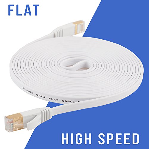 Cat7 Ethernet Cable 100 Feet White, TOPSCABLE CAT 7 Shielded LAN Network Patch Flat Internet Cable with Gold-Plated RJ45 Connectors - for Router LAN Network, ADSL, IP Cameras, PS4, X-Box