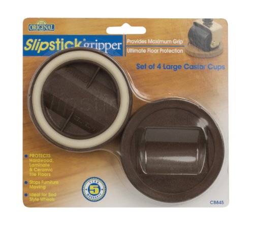 -. Binding : Tools & Home Improvement -. Brand : Slipstick -. Feature : Ideal for piano style wheels / Provides maximum grip and floor protection / Will support up to 250kg or 550-Pound per cup / Recommended to hold a wheel no larger than 45-mm or 1-3/4-Inch -. Label : Slipstick -. Manufacturer : Slipstick -. Model : CB845-PARENT -. NumberOfItems : 1 -. PackageQuantity : 1 -. ProductGroup : Home Improvement -. ProductTypeName : HARDWARE -. Publisher : Slipstick -. Studio : Slipstick -. Title : Slipstick Large Castor Cup Gripper -. Warranty : 5-Year free replacement warranty