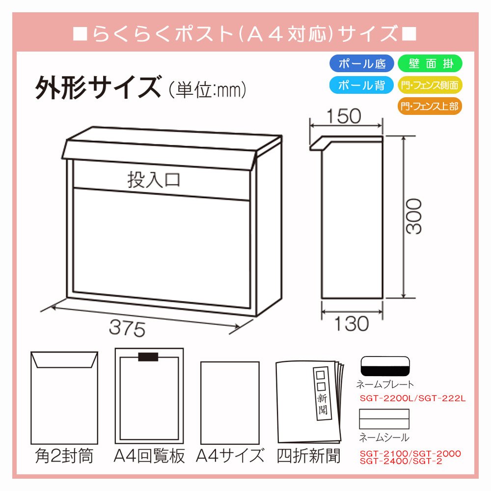 ▽ Security: Can be locked with a commercially available padlock ▽ Specification · Accessory: With name sticker / with peep window Estimated posting: square type 2 number envelope (for A4) / square type 0 envelope (for B4) / A4 circulation board / B4 circulation