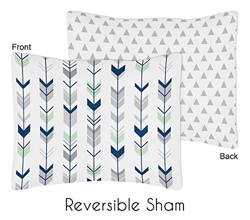 Sweet Jojo Designs Standard Pillow Sham for Grey, Navy and Mint Woodland Arrow Boy or Girl Bedding Sets