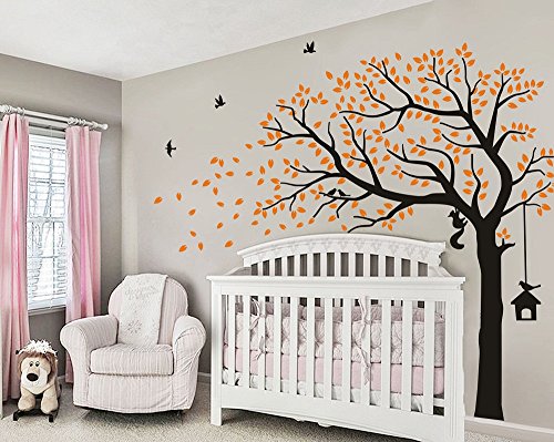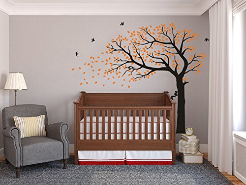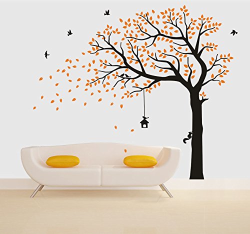 LUCKKYY Large Falling Family Tree Wall Decals Wall Sticks room decor wall stickers for living nursery Baby room (orange)