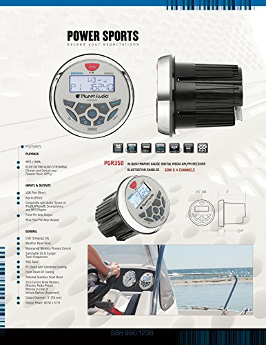Planet Audio PGR35B IPX6 Rated, Bluetooth, Digital Media MP3 / WMA / USB / AM/FM Compatible, Weather-Proof Marine Stereo, (No CD Player)